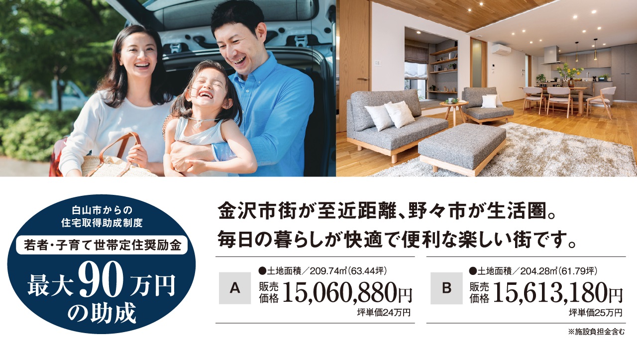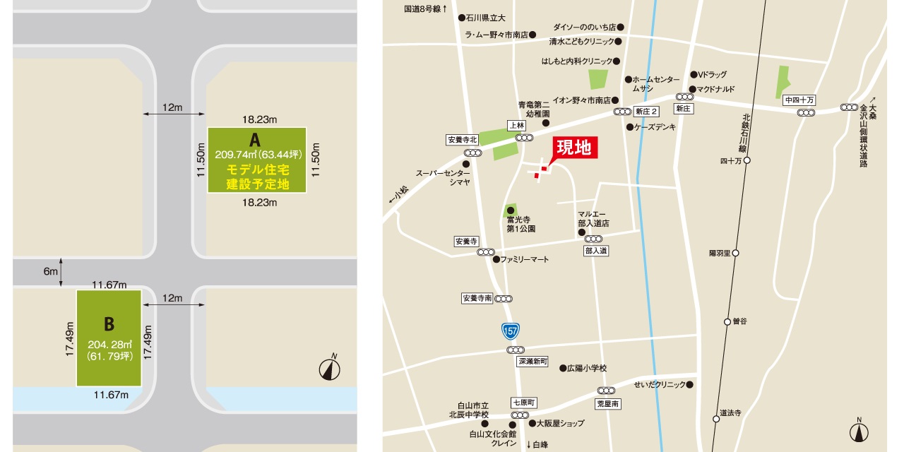 [物件概要]●所在地/白山市部入道町土地区画整理事業施行13街区11、19街区7●今回販売区画数/2区画(13-11、19-7)●地目/宅地●用途地域/第一種中高層専用地域●建ぺい率/60%●容積率/200%●道路/幅員6.00m(北側)12.00m(東・西側)●電気/北陸電力●上下水道/白山市公営水道●ガス/個別プロパン●交通/北鉄バス(百々鶴荘前)徒歩約4分●教育/広陽小学校・北辰中学校●取引様態/売主[建築条件付宅地]※3ヵ月以内に当社と建築請負契約締結が条件