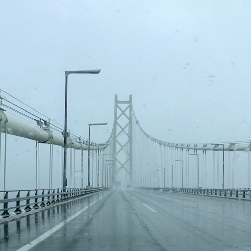翌朝も大雨w 明石海峡大橋を眺めながら♡
