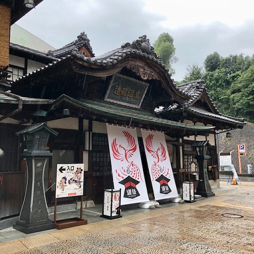 道後温泉本館 正面入口 真ん前「道後商店街」