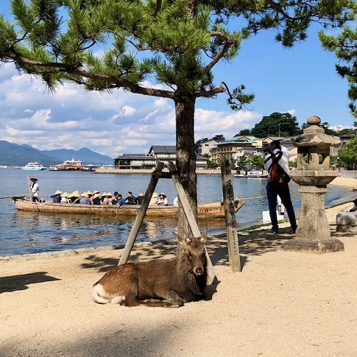 大鳥居を眺めるべく、穏やかな瀬戸内海を