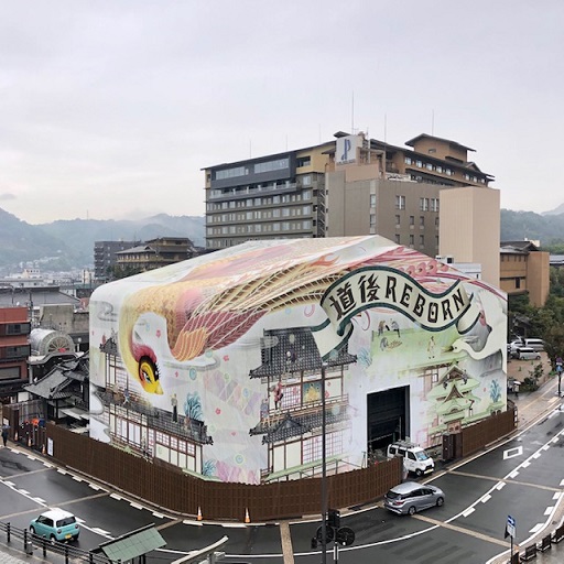上の、道後温泉本館の写真に少しだけ見える