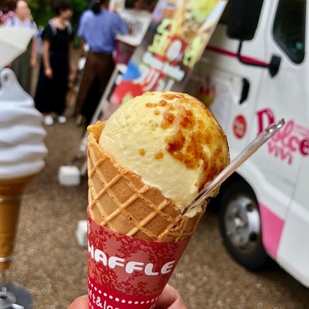 ブリュレを、ワッフルコーンにのせた、香ばしさと