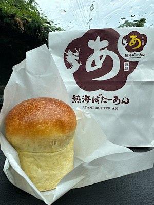 食べ歩きでお腹いっぱいになり、帰り道に熱海ばたーあんのパンを食べました。
