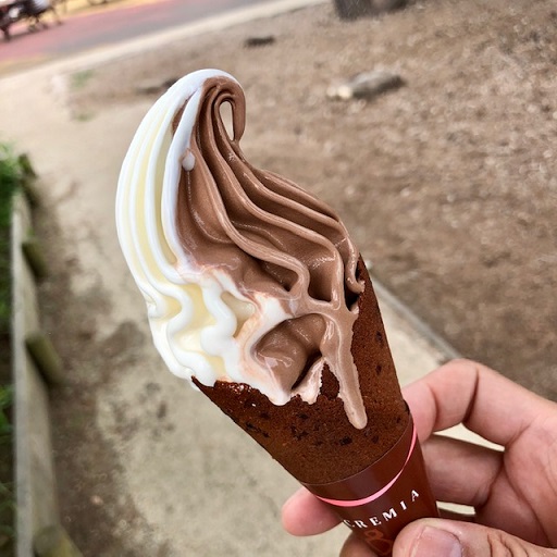 遊園地エリア、暑さで融けるクレミアソフトを