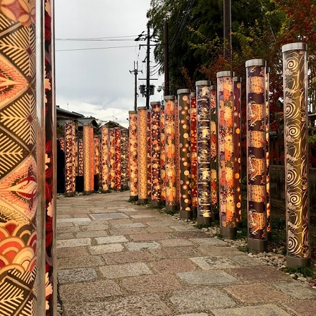 辺りも暗く、光る京友禅の筒?も、映えそうな