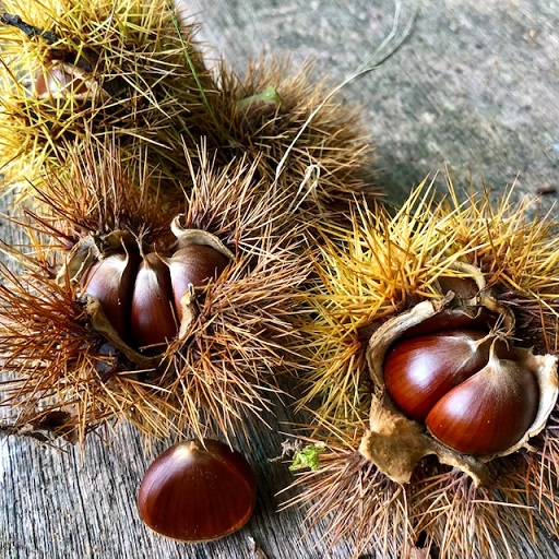 見上げると、木の枝にはイガグリ ☀(°□ ° )✧