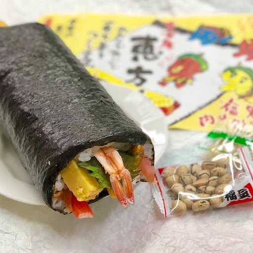 で、恵方巻きを頂き、恵方に向いて無言で食す。