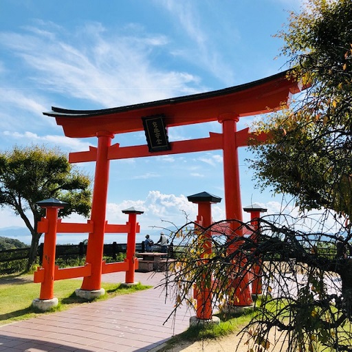 青い空に映える朱色の大鳥居w厳島の小さい版