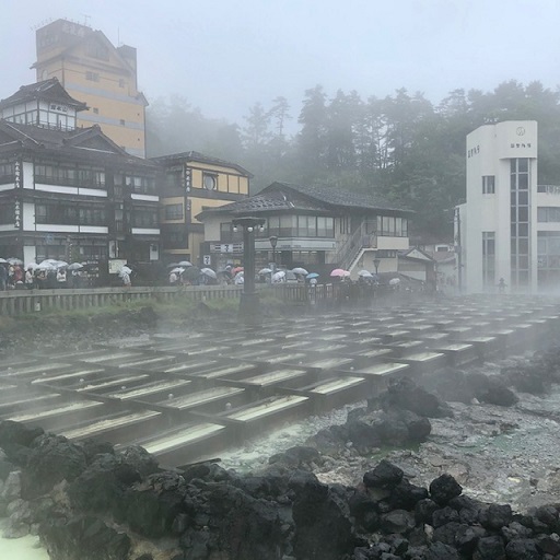 真っ白で何にも見えないw 草津温泉の湯畑♨