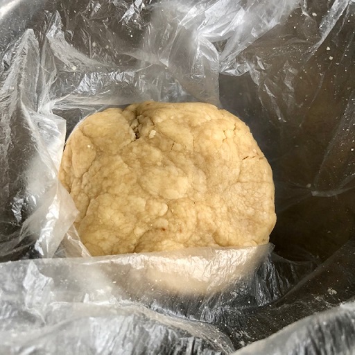ポリ袋のまま、麺棒で薄く広げていきますが