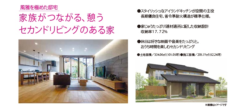 木の上質感と洗練された内装デザインが調和する、風雅を極めた邸宅。「家族がつながる、憩う、セカンドリビングのある家」。今しか見られない、期間限定の完成内見会です。この機会に是非、ご覧ください。
